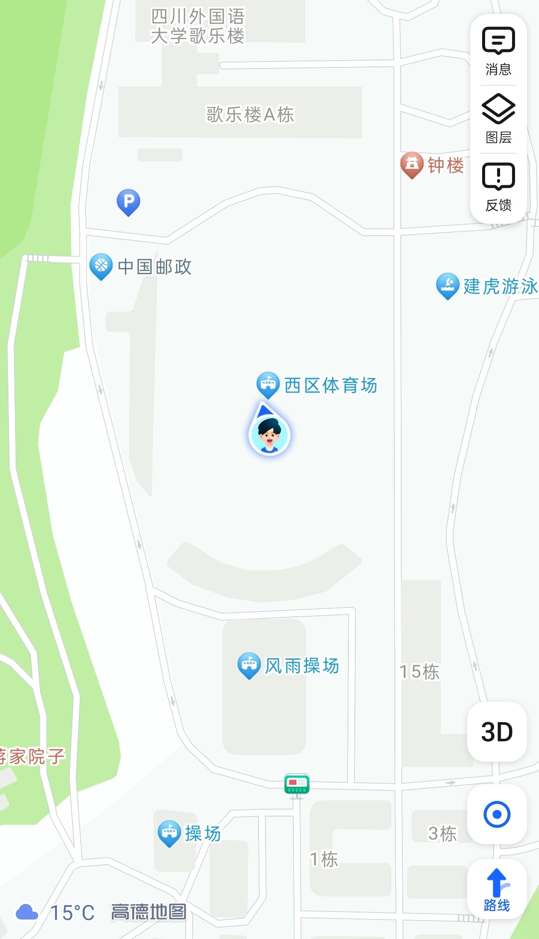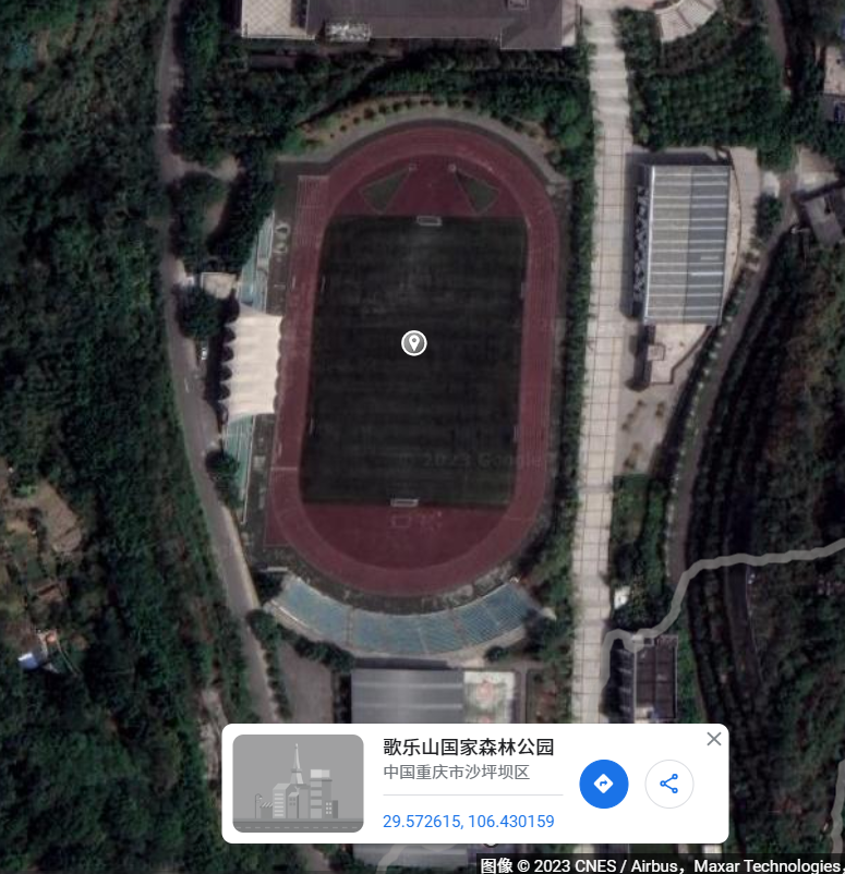 首先要知道你要模拟的位置的经纬度。以四川外国语大学的西区运动场为例子,在Google地图上拾取坐标: